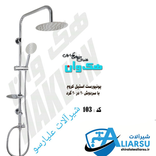 یونیورست استیل کرم هک وان با گوشی و سردوش گرد: سایز سردوش ۲۰/۲۰ :شلنگ استیل کرم قطعات برنجی: لوله استیل ۳۰۴:شیر بین راهی برنجی