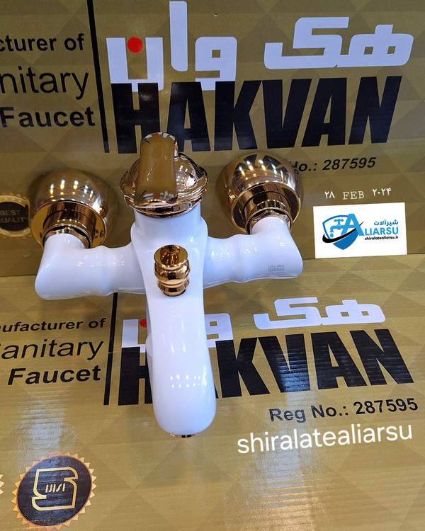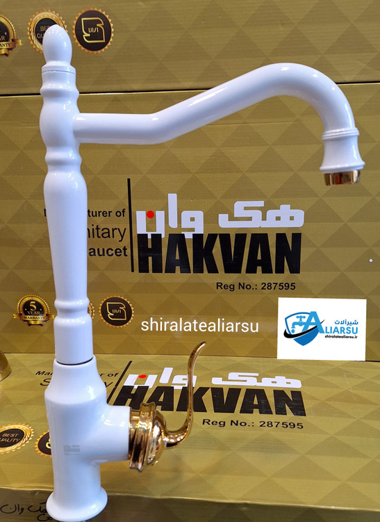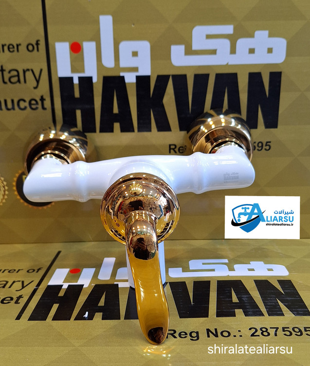 ست ۴عددی شیرآلات اهرمی لوکس سفید طلایی بامبو لاروس هک وان شیرآلات علیارسو