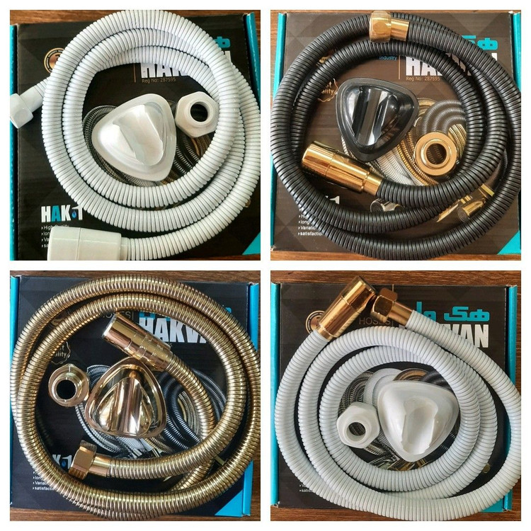 شلنگ آفتابه تمام استیل سفید با قطعات تمام برنجی درجه یک