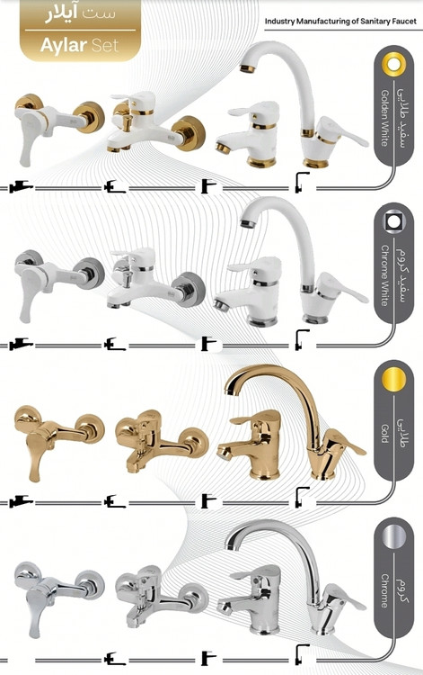سری ۴عددی شیرآلات اهرمی طلایی مدل دسته لاله آیلار *شیرآلات علیارسو