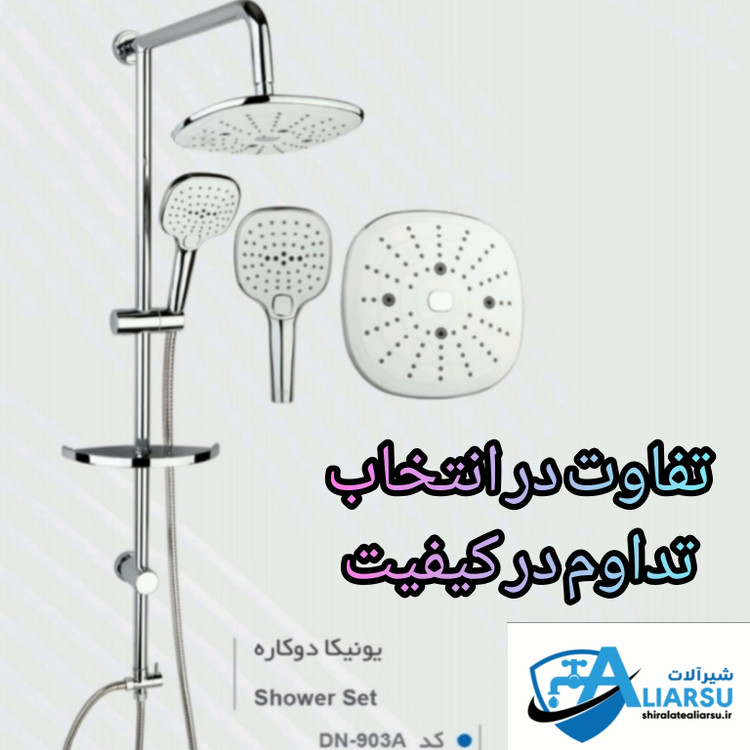 یونیورست دوکاره دی انDN کد ۹۰۳A با لوله های ضد زنگ با دو بار آبکاری# آب پاش گوشی و سردوش سیلیکونی با دگمه دو حالته# شلنگ ها تمام استیل براق با قطعات برنجی# شیر بین راهی سنگین وزن برنجی درجه یک محصولات دی ان در اندیشه کیفیت جهانی