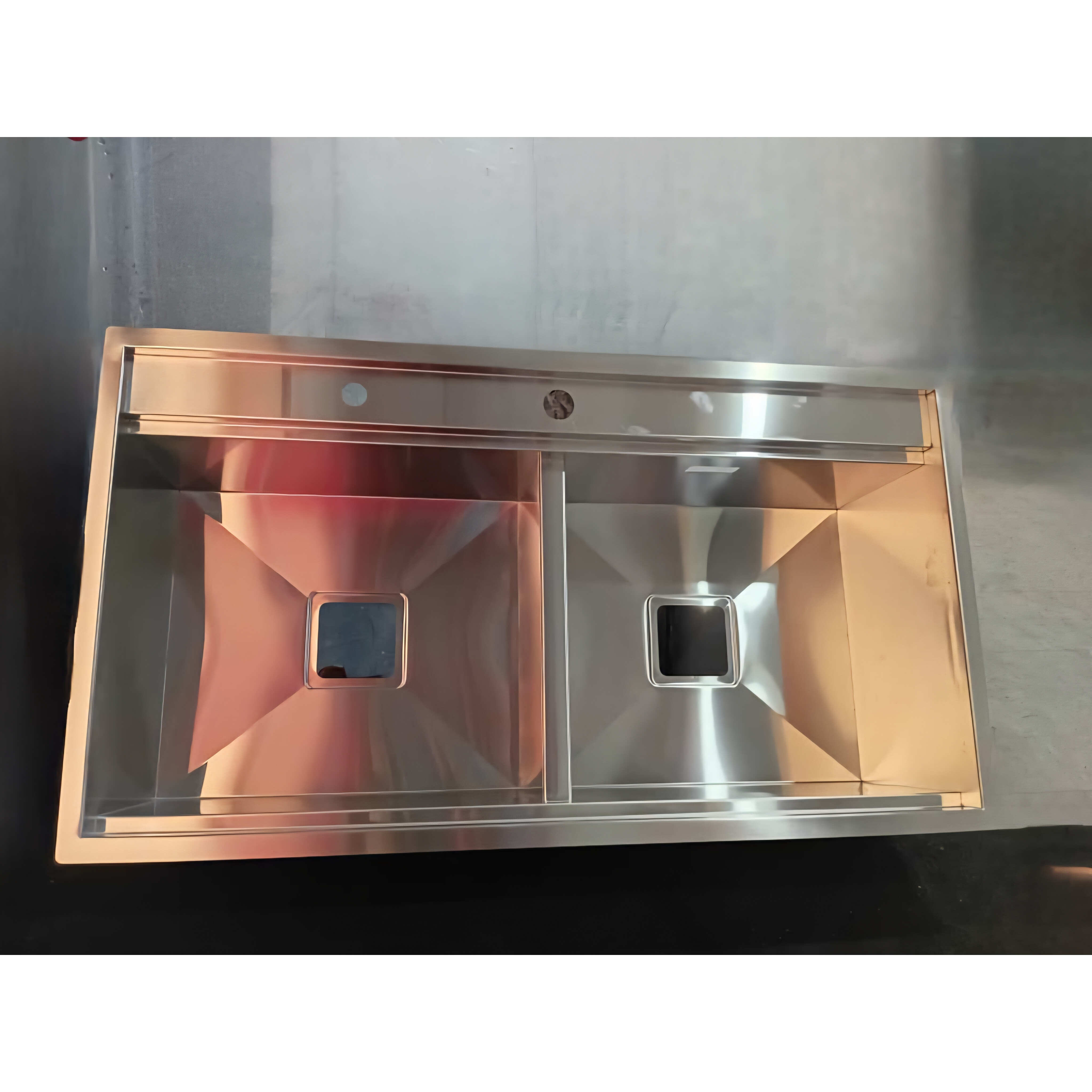 سینک ظرفشویی توکار باکسی مدل دست ساز دو لگن *ابعاد ۵۰×۹۰ عمق ۲۵میلیمتر *ضخامت ورق ۱ میلیمتر *جنس ورق استنلس استیل ۳۰۴ ۱۰۰٪ضد زنگ