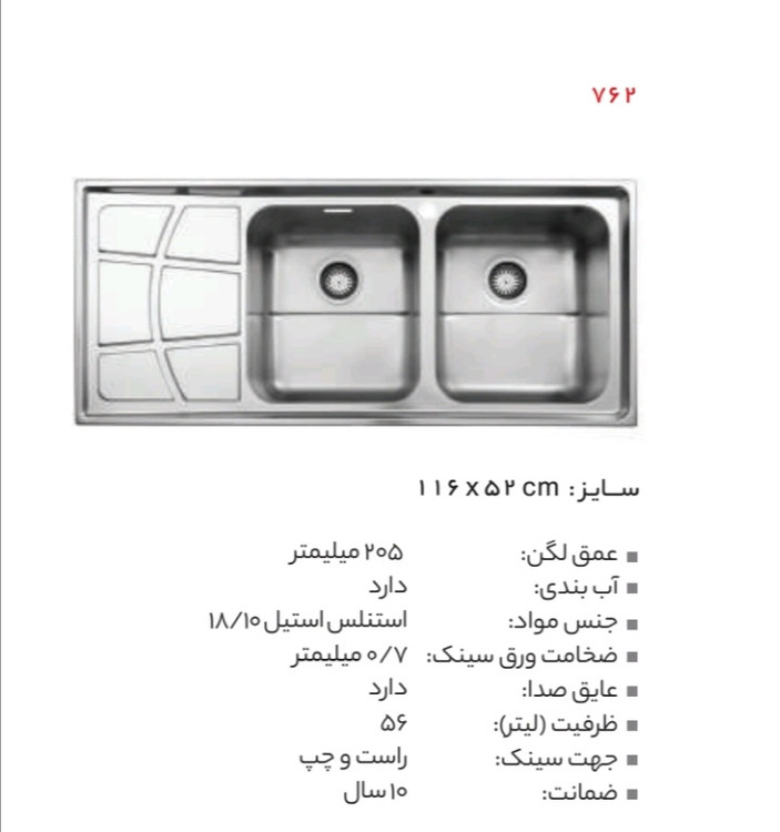 ▪️ضخامت ورق سینک:۰/۸ میلیمتر