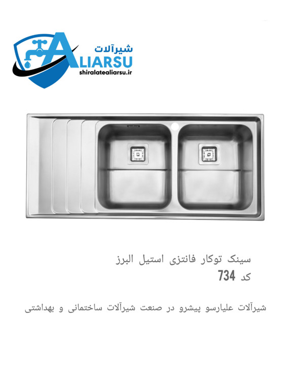 سینک ظرفشویی آشپزخانه توکار فانتزی استیل البرز کد ۷۳۴: سایز ۱۱۶/۵۲sm * شیرآلات علیارسو *شیرآلات علیارسو