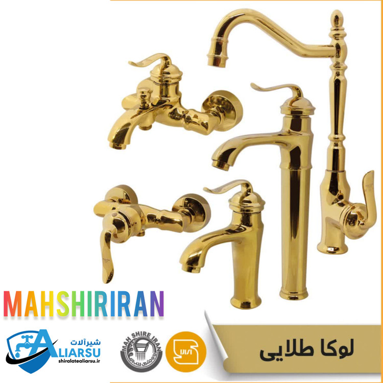 ست۴عددی شیرآلات اهرمی لوکس طلایی مدل لوکا برند ماه شیر ایران شیرآلات علیارسو